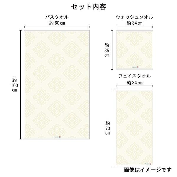 | セット内容 | バスタオル×1、フェイスタオル×1、ウォッシュタオル×1 |