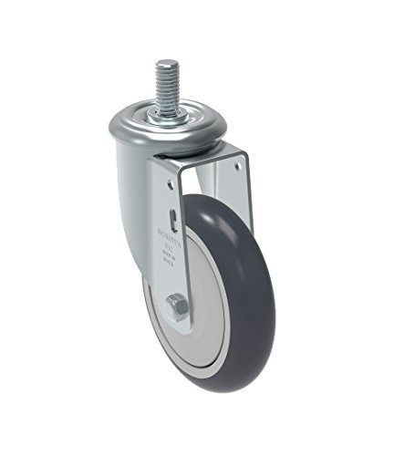 Schioppa GLEIF 512 TBE L12 Series 5" x 1-1/4" Diameter Swivel Caster, Non-Marking Thermoplastic Rubber Precision Ball Bearing Wheel, 1/2" Diameter x 1-1/2" Length Threaded Stem, 275 lb