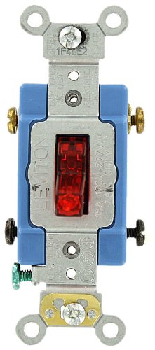 Leviton 1202-PLR 15 Amp, 120 Volt, Toggle Pilot Light, Illuminated On, Req, Neutral Double-Pole AC Quiet Switch, Extra Heavy Duty Grade, Red