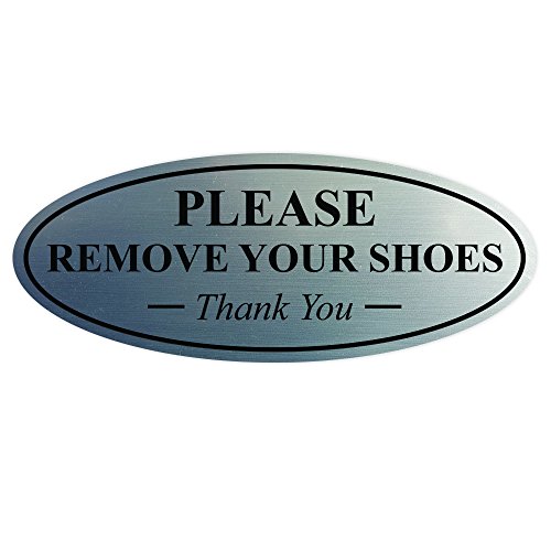 Oval PLEASE REMOVE YOUR SHOES Thank You Sign - Silver Large