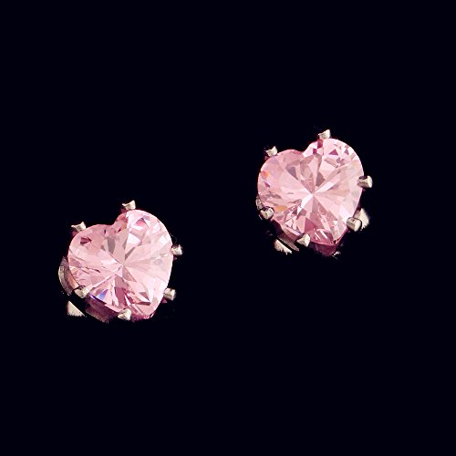 - Title : Silver Pink Cubic Ziconia Cz Heart Shape Stainless Steel Stud Earrings, 7mm