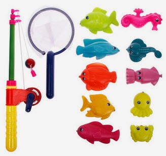 Fishing game helps to concentrate the attention of children and various kinds of fish brightly colored toys .