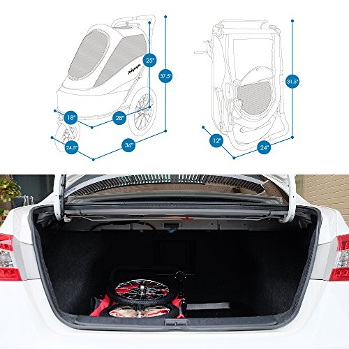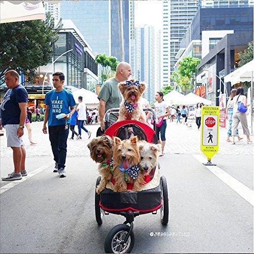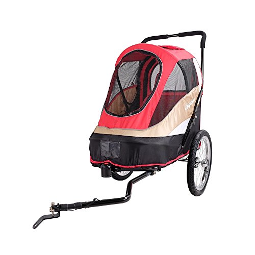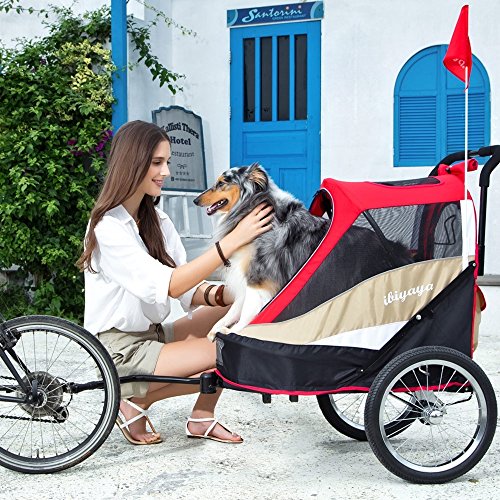 Studio : ibiyaya Publisher : ibiyaya Binding : Misc. Product Description This Red Happy Bicycle Pet Stroller/ Trailer by ibiyaya is a must-have for the owner and their pets who enjoy and spend a lot of time together outdoor. Whether you want to take a stroll through the neighborhood or want to go biking with your pet, you can do that with this dual-purpose pet transportation apparatus. ◆ Steel frame with air-filled tires for a smooth ride. ◆ Large front mesh window and sunroof for great scene and air ventilation. ◆ Rear entry allows for easy access. ◆ Reflecting plates. ◆ Large storage pocket. ◆ Rear safety brake system. ◆ 3 x adjustable leash included. ◆ Easy folding and compact for storage. ◆ Bike connecting tube to attach with bike and stroller rain cover included. ◆ Can be used as a Pet Stroller and/ or a Bicycle pet trailer. Recommended Weight Limit: 50lbs N.W.: 26lbs Carriage Dimensions: L28 W18 H25 (in) Stroller Dimensions: L36 W24.4 H37.4 (in) Folded Dimensions: L31 W24 H12 (in) Accessories: Safety Tethers x3 / Removable pad / Versatile coupler attaches to most bicycles
