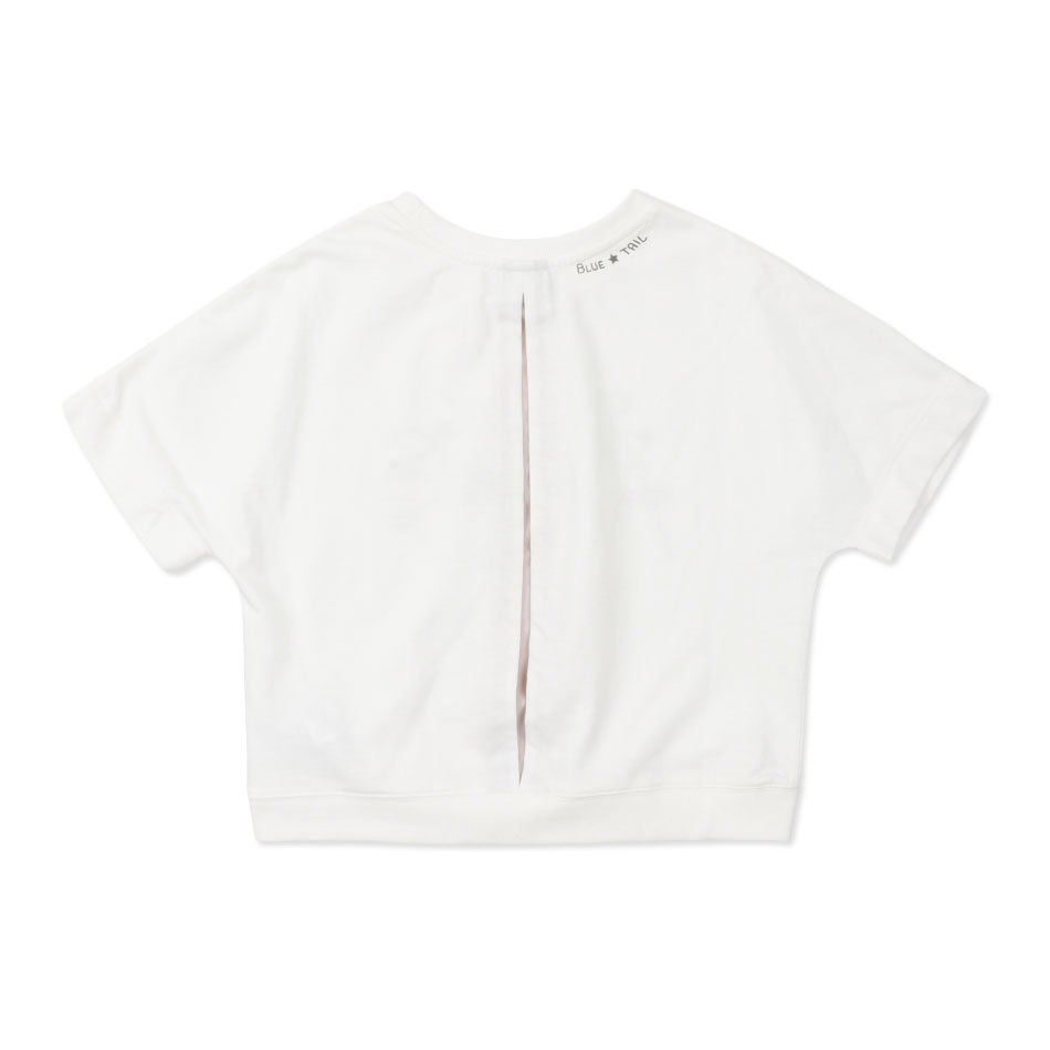 크롭 기장으로 제안한 화이트 반팔 티셔츠입니다.