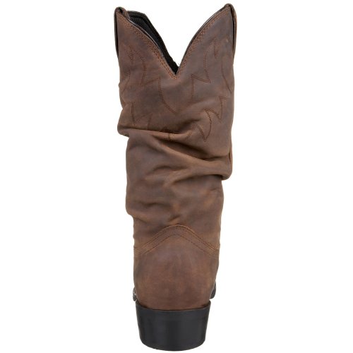 Studio : Durango Publisher : Durango Binding : Apparel Product Description The upper on this Durango Slouch Western looks distinguished. It has been crafted with full-grain leather and because it is free of unnecessary adornment its look will never go out of style. Plus, the leather's neutral hue allows this Western to look nice with just about anything you can pull out of your closet. The dipped topline and pull tabs are features that make it easy for you to get your feet down into this Western footwear. Once they are in, you will be able to feel how soft the fully lined interior is and how much comfort and flexibility derives from the cushioned insole with flex forepart. The composition outsole has been stained by hand and because the Strider heel is only 2 ;? high you will be able to maintain your normal walking pace. If you have been on the lookout for timeless-looking footwear, this Durango 12 ;? Slouch Western Boot might be the right choice for you! 0