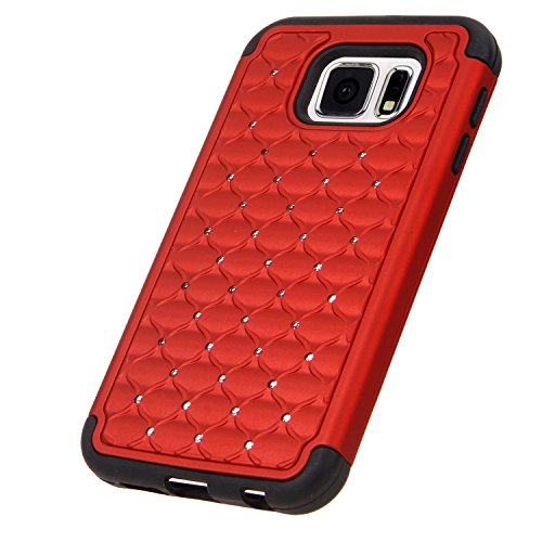 S6 Case, Galaxy S6 Case, Style4U Galaxy S6 Studded Rhinestone Crystal Bling Hybrid Armor Case Cover for Samsung Galaxy S6 with 1 Style4U Stylus [Red / Black]