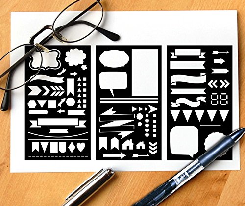 GSS Designs Pack of 3 Plastic Planner Stencils Journal/Notebook/Diary/Scrapbook DIY Drawing Template Stencil 4x7 Inch (SL-001)