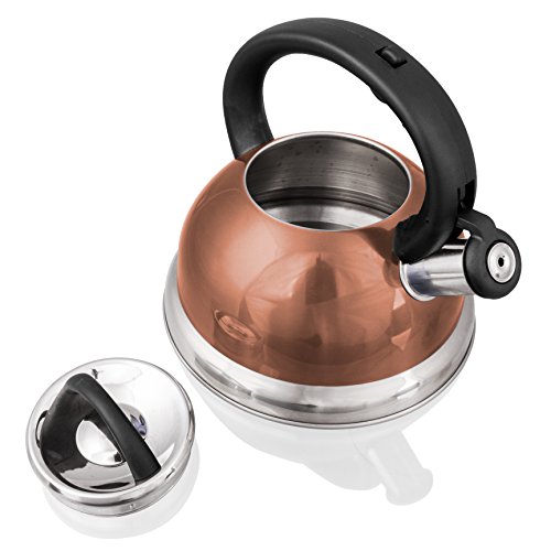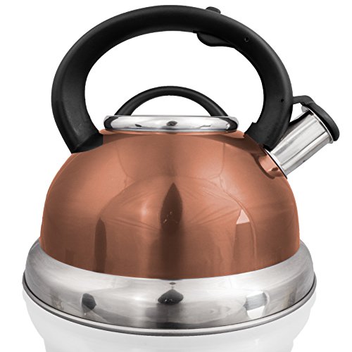 Attractive stainless steel designed for your modernized kitchen! Encapsulated bottom allowed water to quickly heat up and plastic handle for heat resistant! Hinged spout with convenient whistle and easy removable lid for easy and safe filling! Add a healthier lifestyle to your kitchenware! Boil hot steam water and when it is ready the whistle alerts you! Tea Kettle Capacity: 2.8 LitersFeature