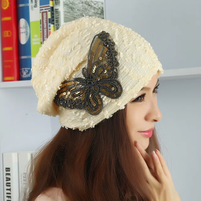 | [해외]프로모션 봄 여름 가을 겨울 아름다움 디자인 브랜드 skullies 모자 여성 여자 소녀 장식 조각 나비 모양의 비니 |
