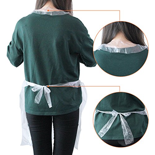 Kbnian 100pcs Disposable Polyethylene Waterproof Aprons, Plastic Aprons--Waterproof, Food Industry, Cooking, Painting, Dishwashing
