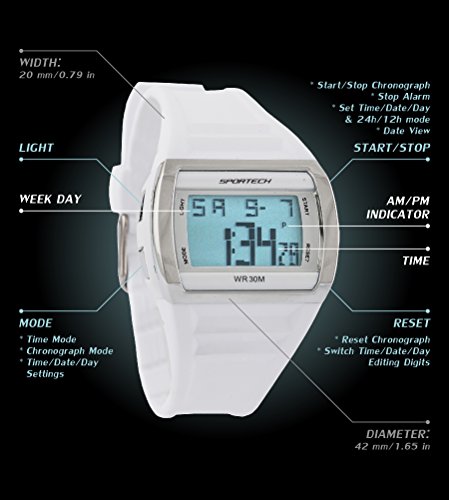 Sportech Women's | Modern White & Silver-Tone Digital Water Resistant Sport Watch | SP10301