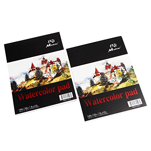Madisi Watercolor Paper Pad, 9 X 12, 32 Sheets, 140lb (Pack of 2 Pads)