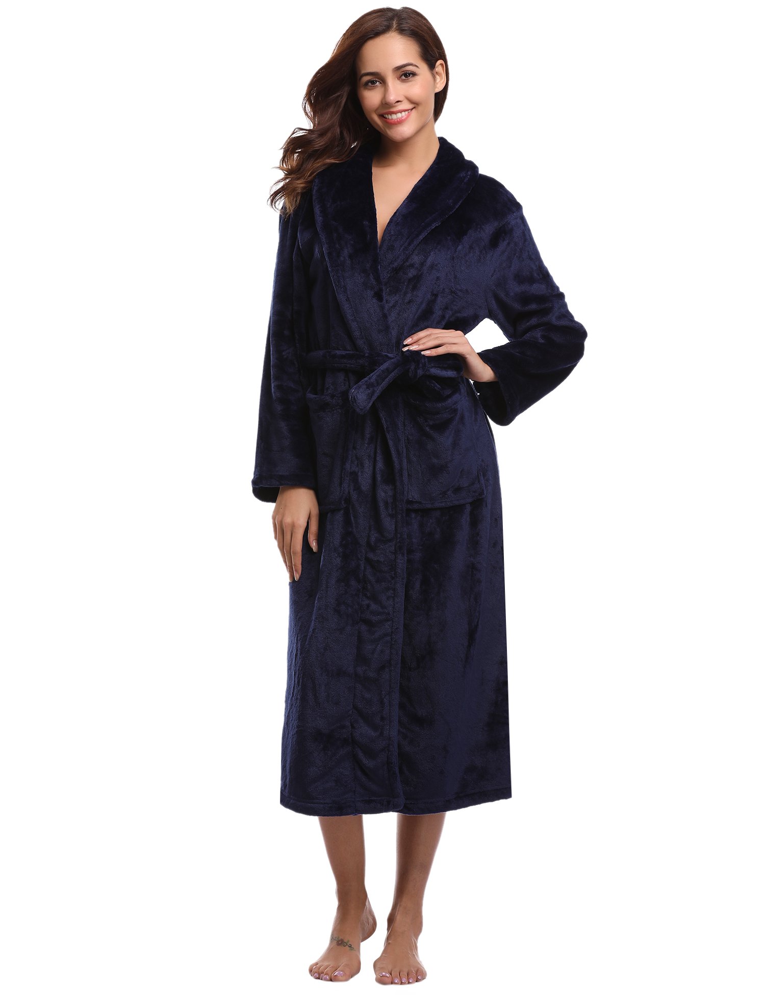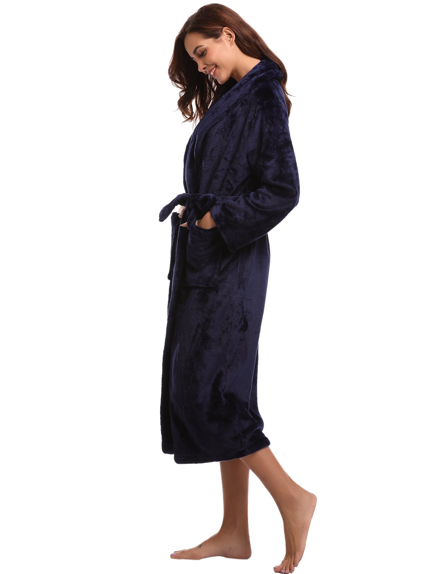 】 Coral fleece coral pile material Bathrobe solid color · pure color Also soft texture Fluffy pockets with belt Long length