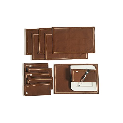 -. Feature : SET THE TABLE FOR SIX You get matching napkins and place mats to serve up to 6 people / BRIGHTEN UP YOUR DINNER TABLE Vivid brown fabric make these table linens simply stunning / BEST QUALITY FABRIC 100% cotton duck is ultra absorbent and has a nice stiff body for easy folding; No starch required! / THE PERFECT SIZE Napkins measure 20 inches by 20 inches, while the placemats are 12 inches by 18 inches / MACHINE WASHABLE CONVENIENCE The table linens can be washed in cold water. Don't soak and line dry in the shade