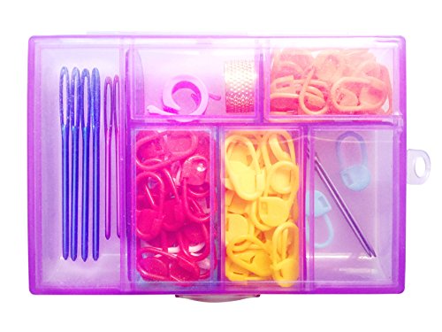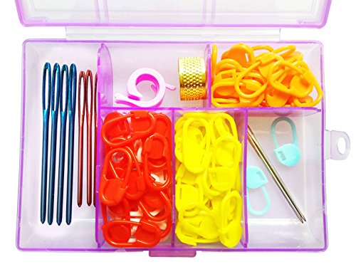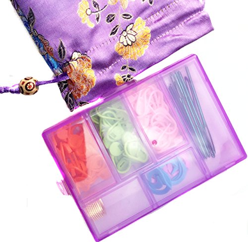 A Silk Bag & Purple Box of 12 Pcs Coloful Tapestry Needles Darning Needle Finishin Needles Large Eye Blunt Needles + 60 Pcs Lock Markers & 1 Thimble