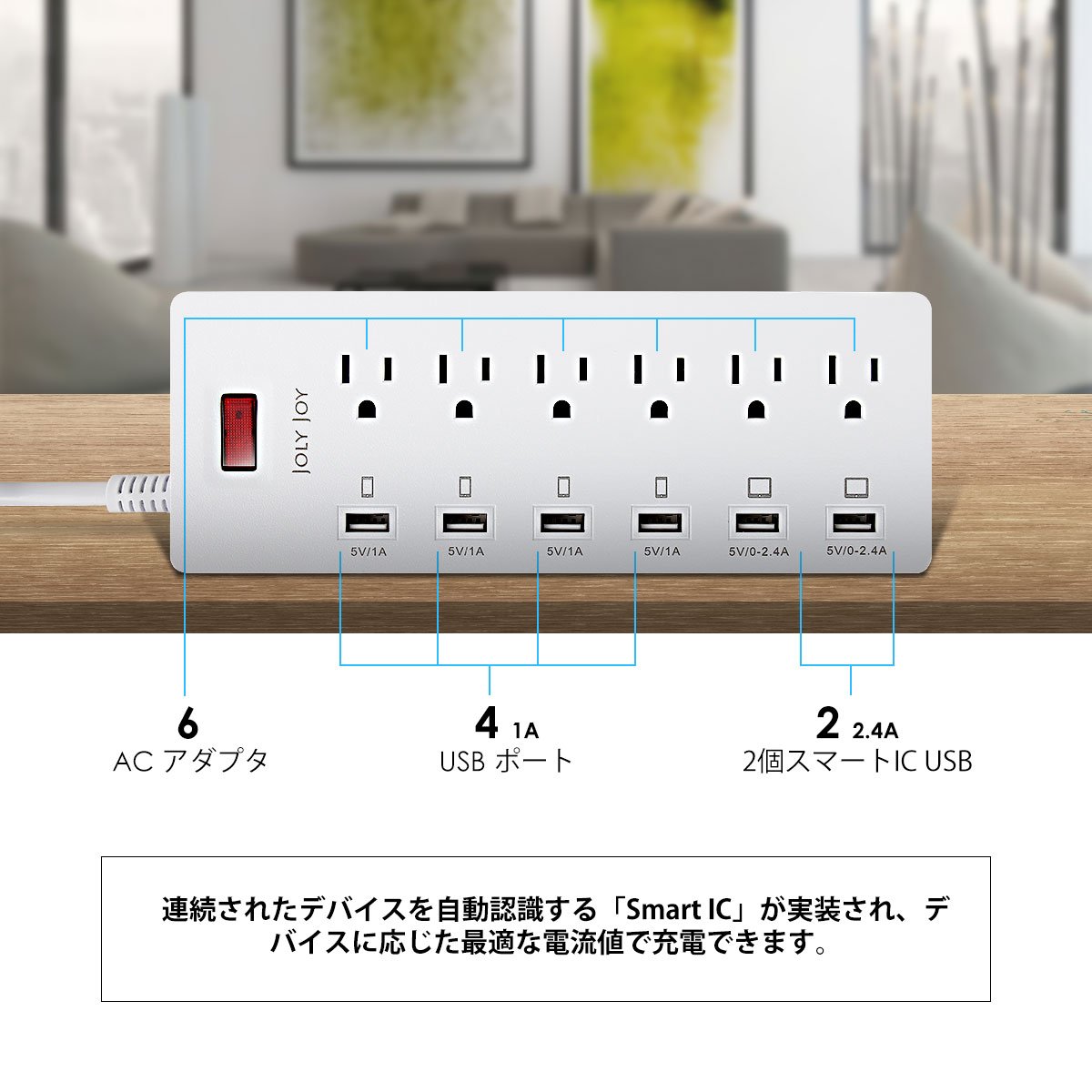 1 Joly Joy 6 with USB charging port 6 - outlet power supply tap x 1; Instruction manual x 1.