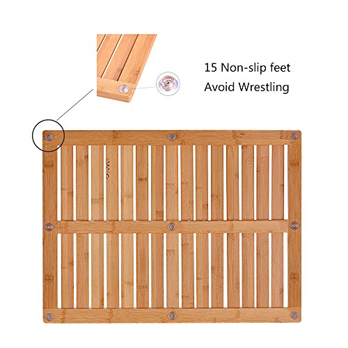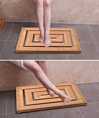 Bamboo floor and shower mat is made of natural bamboo,which is hard and can bear massive loads. Because of the bamboos natural strength there is no need to worry about breaking or damaging the mat while in use.Pure natural high quality bamboo bath mat ,designed to be in damp and moist areas,we spray 100% environmental painting on the surface of shower mats,no taste and mould resistant!you'll never worry about decaying problem.