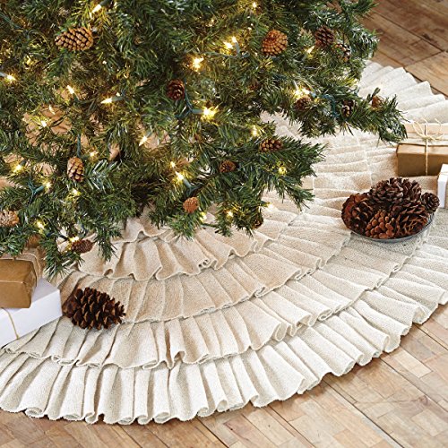 SHIMMER BURLAP CREME RUFFLE TRIM RUSTIC CHRISTMAS TREE SKIRT, 50 INCHES, HOLIDAY DECORATION