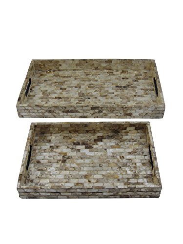Firefly Home Collection 2 Piece Cream Mother Of Pearl MDF Tray Set, 18.25" x 14.75" x 2"/13.75" x 9" x 1.75"