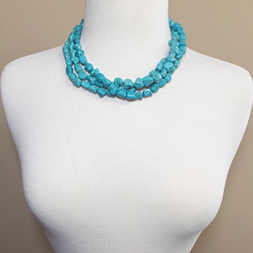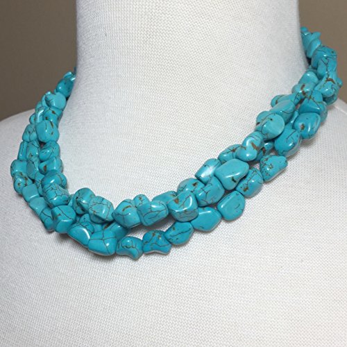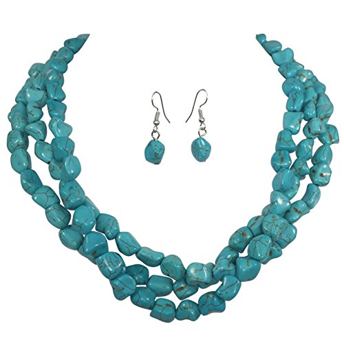 -. Title : 3 Row Imitation Turquoise Stone Beaded Layered Necklace And Earrings Set
