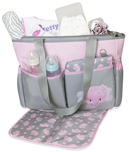 ReleaseDate : 2017-06-09 Studio : AD Sutton Sons Publisher : AD Sutton Sons Binding : Baby Product Product Description The Tender Kisses Elephant 3-Piece Diaper Tote Bag Set brings fun and convenience when you and baby are on the go. An irresistible little elephant face is appliqued and embroidered on the front of the bag in pink and greyon a soft gray ground. The included pouch and changer are done up in a cute elephant print, and a so-stylish lattice print in pink and grey is used in contrast. Multiple pockets keep everything in place, including two front pockets, two elastic-topped side pockets and a roomy pocket in back. Open the zip top to find two more pockets inside. Lining is light colored to make items easy to find, and the sturdy double handles are made to last.? 0