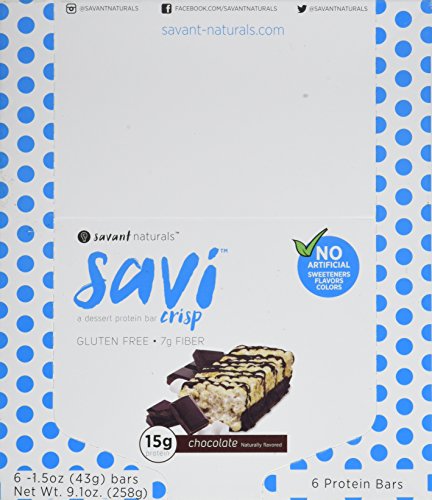 Product DescriptionTired of chalky, chewy, hard to swallow protein bars? Try a healthy and crispy alternative; the savi crisp dessert protein bar.0