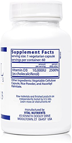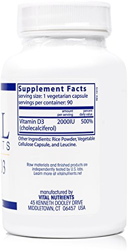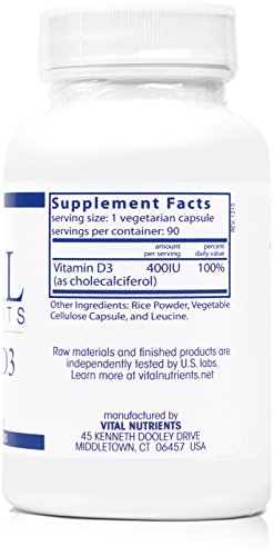 -. Binding : Health and Beauty -. Brand : Vital Nutrients -. Feature : Essential vitamin for absorbing and using calcium in the diet / Essential to bone health / Supports all-over bone, cardiovascular, neuromuscular, blood, and immune health / Aids in maintaining colon health / Order comes with 90 easy-to-swallow vegetable coated capsules -. Label : Vital Nutrients -. Manufacturer : Vital Nutrients -. ProductGroup : Health and Beauty -. ProductTypeName : HEALTH_PERSONAL_CARE -. Publisher : Vital Nutrients -. Studio : Vital Nutrients -. Title : Vital Nutrients Vitamin D3