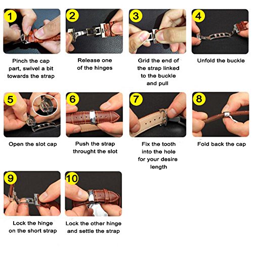 -. Title : Beauty7 12-24mm Genuine Leather Calfskin Watch Band Strap Replacement Push Button Deployment Clasp