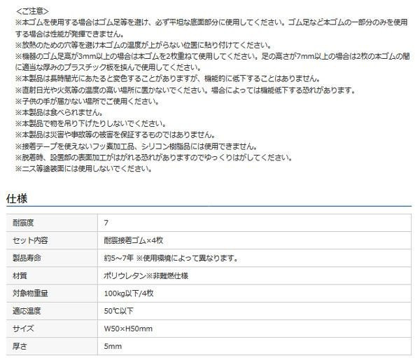 家庭用のAV機器、棚、置物等を衝撃・振動から守る大型接着ゴム。すぐれた低弾性と粘着性により、上下・左右・前後のあらゆる揺れに対応します。