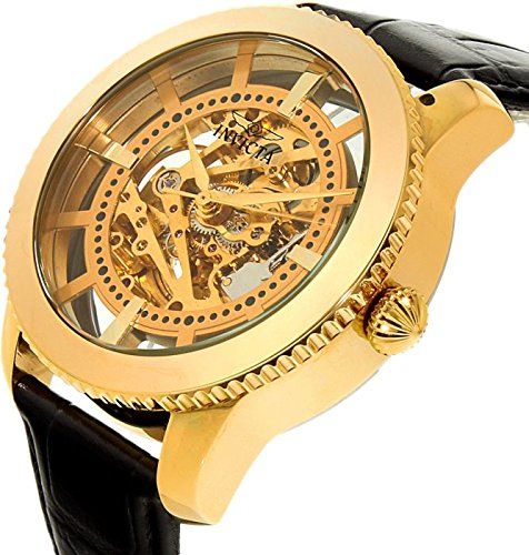 우수한 스타일에 덧붙여,빈티지 콜렉션은,높은 품질을 제공.Invicta는 독창적으로,완벽한 외관을 가진 것에 알려져 있습니다. 그 대담한디자인.남의 골드와 스켈리턴조의 다이얼과 호화인 18?K골드 도금.정밀한 자동 감기의 움직임.강조 된 쾌적한 블랙의 가죽 스트랩.당신의 콜렉션을,이 때계에,오늘,완성시켜 하십시오.-