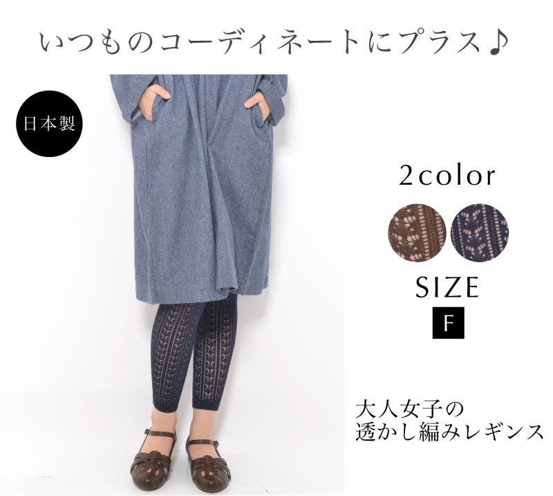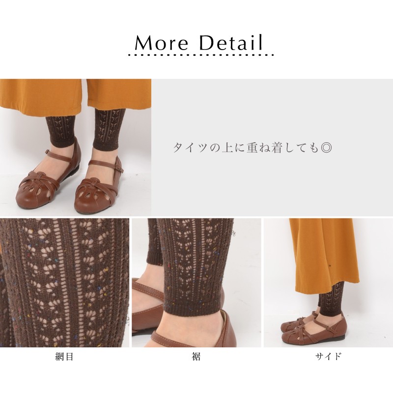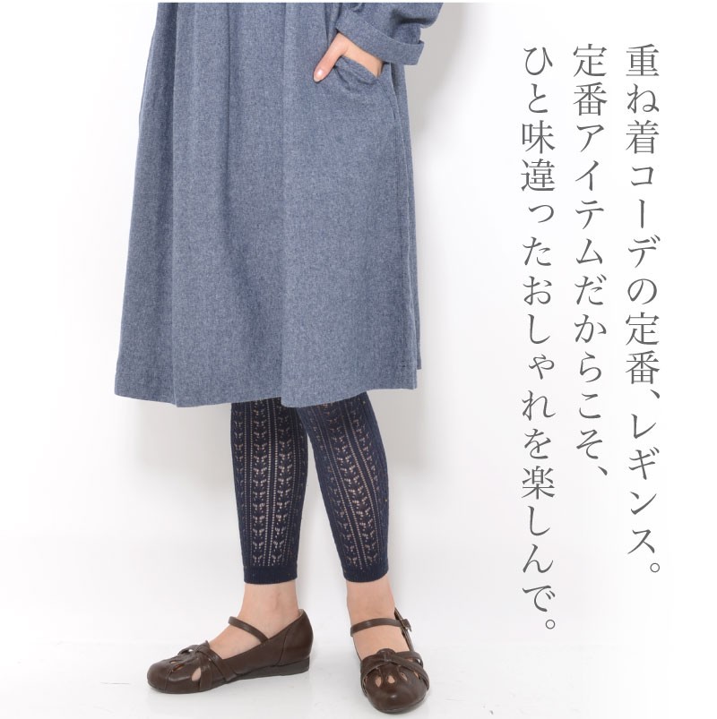 大人女子の透かし編みレギンス。