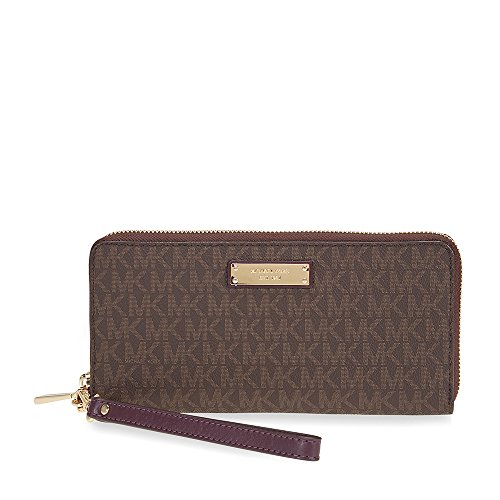 -. Brand : -. Color : Brown -. Department : womens -. EAN : 0191262375118 -. Feature : Jet Set -. Model : 32S7GTTE9B-577 -. ProductGroup : Shoes -. ProductTypeName : HANDBAG -. Size : 8.25" x 4" x 1". -. Title : Jet Set Travel Logo Continental Wristlet- Brown and Purple -. UPC : 191262375118