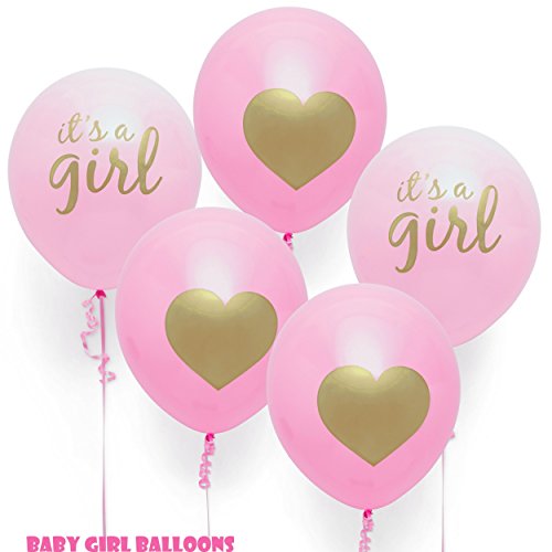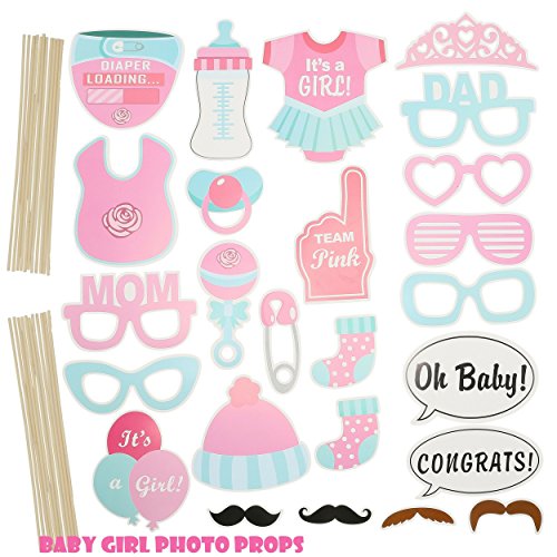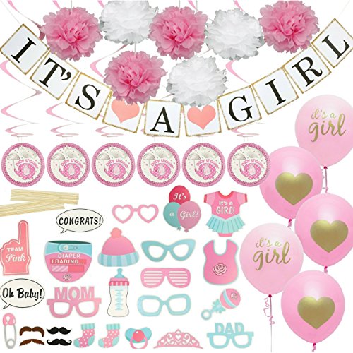 - SET INCLUDES OVER 40 PIECES! - Our Baby Shower Decoration Bundle includes matching "Its A Girl" Banner and Balloons, 25 Unique Photo Booth Props, 7 Pink and White Flower Pom Poms, 6 Elephant Themed Swirlers and several Pink and Gold Heart Printed Balloons