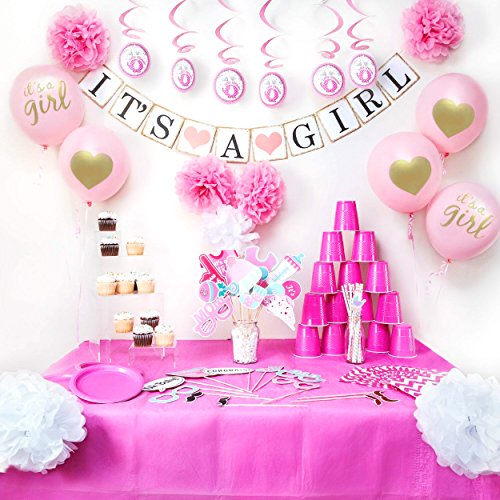 - IMPRESS FAMILY & FRIENDS - By Making your Baby Shower Stand Out while welcoming in and surprising your guest to your lovely Baby Shower aided by our decorations. Our Bundle goes great with any baby shower invitations, decals, souvenirs, gifts, favor goodie bags, stickers, game, tablecloths, centerpieces, napkins, cups, plates, cupcakes, cake, invites or any Baby Shower Decoration Ideas you might of already have planned in mind. CONGRATULATIONS ON YOUR NEW BABY GIRL!