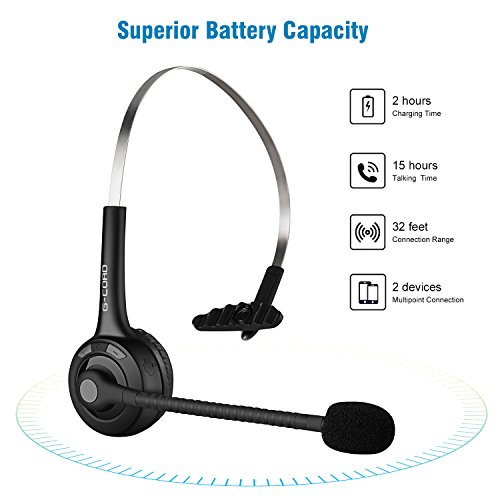 -. Title : G-Cord Bluetooth Headset with Mic, Retractable Office Wireless Headphones for Skype, VoIP, Truck Driver, Call Center (2 Pack)