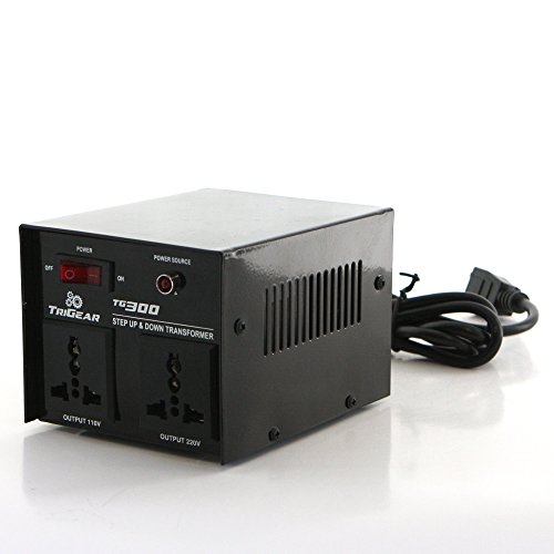 TriGear series step up/down voltage transformer supplies a safe, reliable, inexpensive, and convenient solution for voltage conversions. The transformer allows conversions from 110-120 volt up to 220-240 volt or from 220-240 down to 110-120 volt. This modification is applicable towards both home use and industrial applications. Rated at a maximum of 300 watts, the TriGear TG-300W features a heavy duty cord with a standard U.S. 3 prong plug. This package includes a free American to German outlet plug adapter. This unit features a total of 2 outputs on the front panel. The outputs are grounded with 1 designated for 110-120 volt on a universal outlet and the other supporting 220-240 volt with a universal outlet. These outputs can be used simultaneously and continuously. It's recommended that your voltage transformer's wattage be 50-100% greater than your appliance's wattage. Items such as TVs, power tools, and microwave ovens require up to 3 times the wattage displayed. This requirement is due to the power surge that occurs when the appliance is first turned on. If your equipment's wattage is not available, then you can still figure out the power rating you need by calculating your appliance's actual wattage using the following formula. Note: You will need your equipment's amperage and voltage ratings to calculate the wattage: Volts(V) x Amp(A) = Watts(W). For example: 120V x 1.5A = 180W, therefore recommending a 270W-360W transformer, unless the equipment is a TV, power tool, or microwave oven which recommends 3 times the wattage displayed on the appliance.Feature