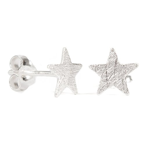 Schmuxxi Stern Ohrstecker Ohrringe 925 Silber matt geburstet 7mm fur Damen, Jugendliche Madchen und Herren (2 Stuck - 1 Paar)
