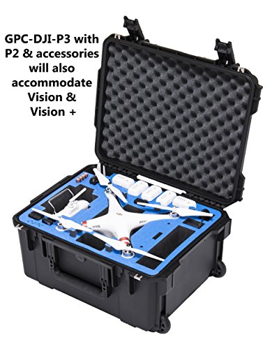 Go Professional Cases DJI Phantom 3 Plus Universal Case provides a custom foam experience, fitting the Phantom 1, Phantom 2, Phantom 2 Vision, Phantom 2 Vision + or the Phantom 3 . This case is designed with ample space to carry extended landing gear if needed, multiple batteries, chargers and antennas.