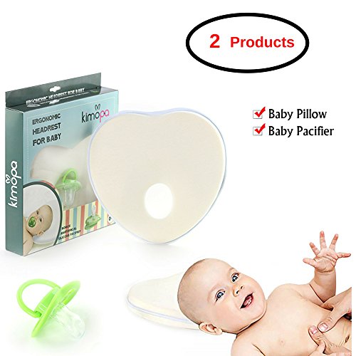 BABY PILLOW for newborns and BABY PACIFIER from KIMOPA ; memory foam core, organic cotton, prevents flat head syndrome or plagiocephaly. Luxury Baby...