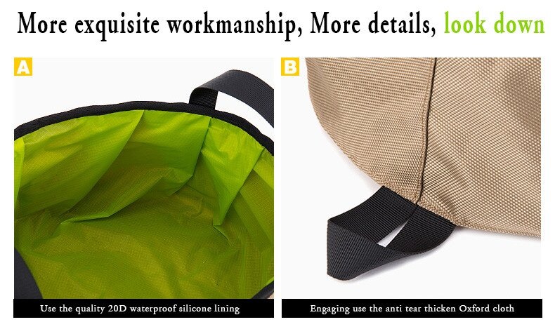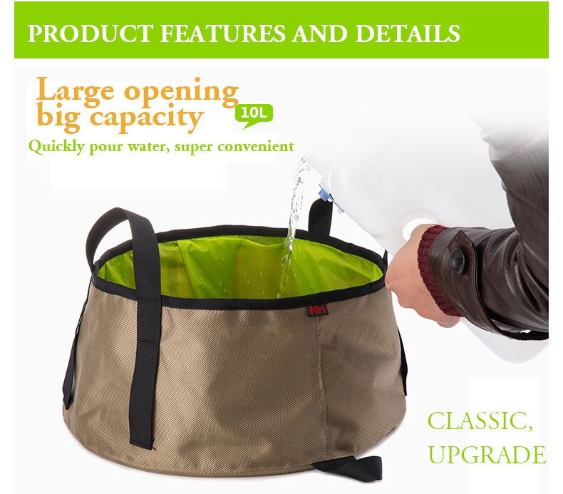 5 colors available, 10 L, foldable, ultralight, multifunctional, so convenient for your outdoor life.