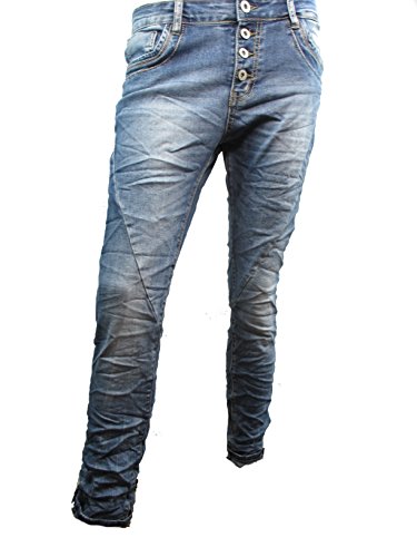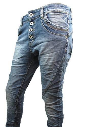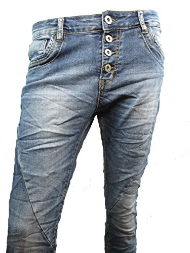 -. Title : Lexxury Damen Baggy Boyfriend Jeans mit offener Knopfleiste vier Knöpfen und schrägen Beinnähten