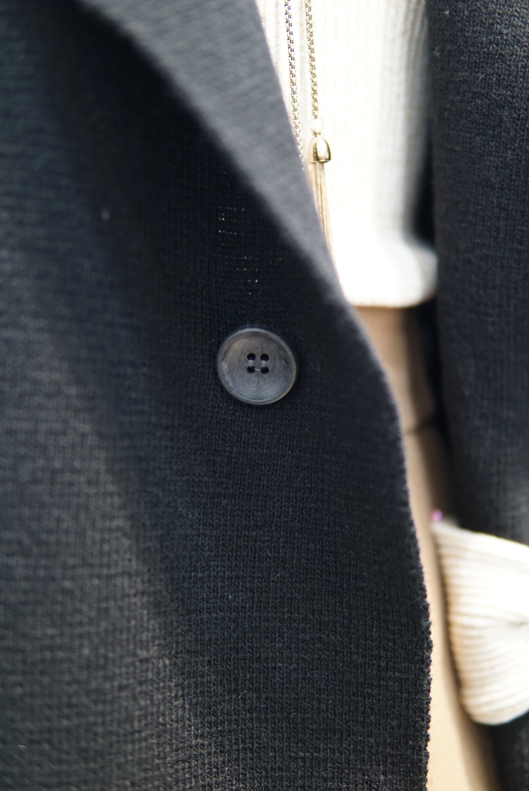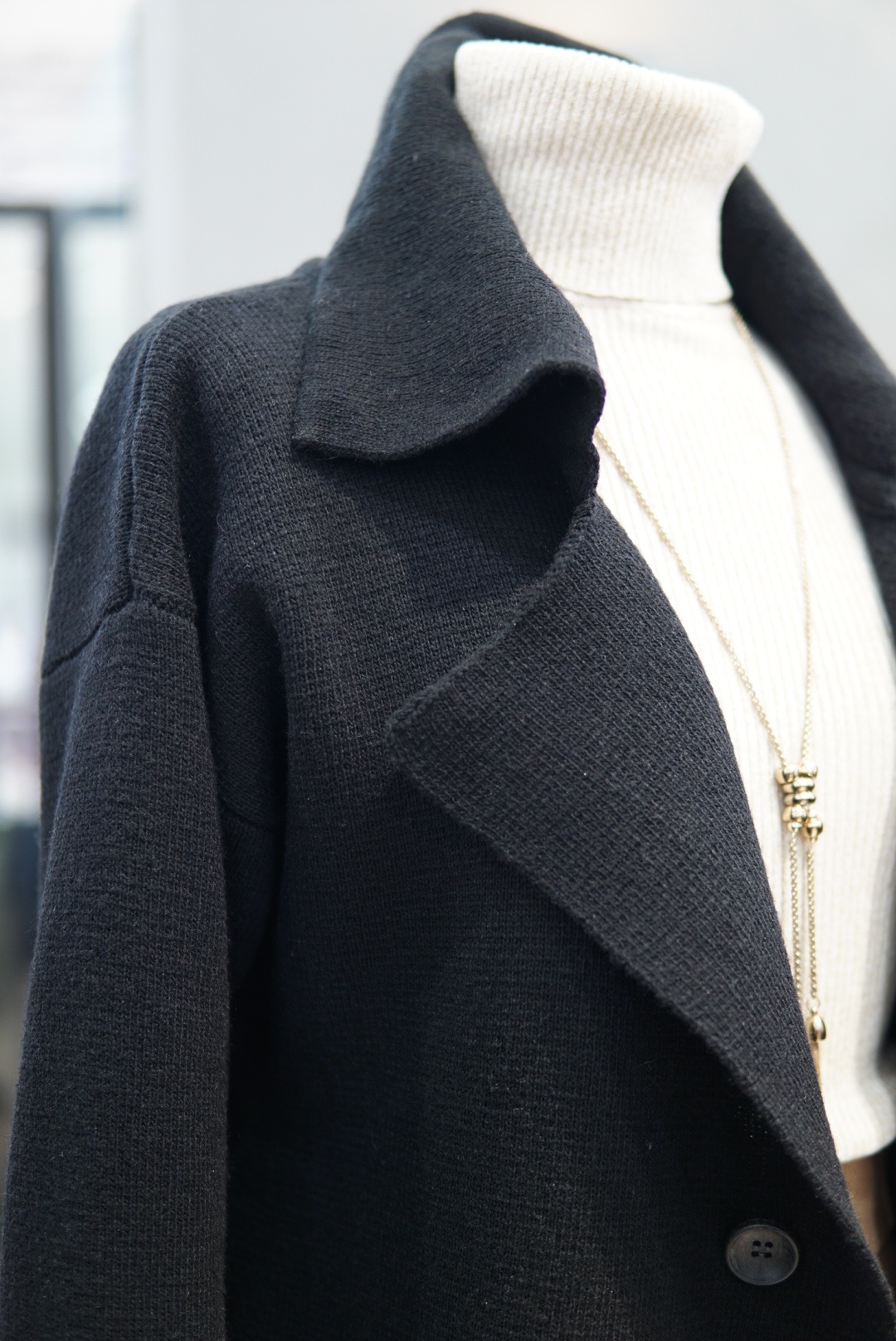 투버튼의 루즈한 핏감의 도톰한 소재가