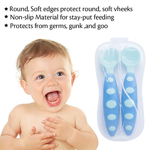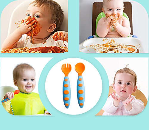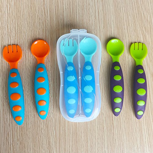 -. Feature : MATERIAL : Our baby spoon and fork sets have a rounded design with soft tips and no sharp pointy bits. Our toddler spoon and fork set are guaranteed to be free of any harmful chemicals. / PACKAGE : There are 3 different colors spoons and 3 forks + 1 travel case. / DESIGN : Unlike some baby fork and spoon sets which can be too deep and long, our spoon and fork set is soft, easy to grip, and is designed to make meal time easy whether you are feeding your baby or your baby is learning to self-feed. / GREAT VALUE : Soft, Non-Slip handles are easy for little hands to hold, help young children eat on their own.Handles are curved to prevent slipping into bowl or plate.Effective fork tines. / RISK FREE GUARANTEED : If you are not satisfied with your purchase. Please do not hesitate to contact us, we will get you back within 24 hours and we will do whatever it takes to make it right. 30 day no questions asked FULL refund & 100% satisfaction guarantees.