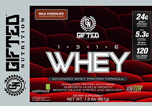 -. Feature : SUPPORTS MUSCLE GROWTH & BOOSTS YOUR IMMUNE SYSTEM: Our premium quality whey protein supplement is the advanced formula your body needs for after strenuous workouts. 1316 Whey Protein helps boost your immune system and helps you recover faster. / DELICIOUS MILK CHOCOLATE FLAVOR SUPPLEMENT GLUTEN FREE: We here at Gifted Nutrition, have cleverly designed this 1.9 lbs. (861 gr) whey powder to fulfill even the most demanding workout needs. It is instantized for easy mixability with your favorite beverage and has a delicious flavor. It is ideal for a low fat and carb diet since it has no added sugars, no artificial colors and it is completely gluten free. / 25 G WHEY PROTEIN PER SERVING FOR MEN & WOMEN: If you are looking for a high quality dietary whey supplement, then 1316 Whey Protein is right for you. From every serving you will get 25g whey protein, over 5.3g naturally occurring BCAAS and only 120 calories. Great for after a hard cardio session or weightlifting gym routine. Ideal for men, women and any fitness enthusiast. / EASY TO USE ADVANCED WHEY PROTEIN POWDER: 1316 Whey Protein is an advanced whey protein supplement that mixes easily and taste great. Simply mix one scoop of Gifted Nutrition protein to 8 Oz of cold water, skim milk or almond milk in a glass, shakercup or blender and there you have it. Enjoy your delicious shake between major meals or after workouts. To maintain the product freshness, please keep it in a cool dry place.