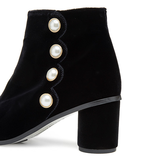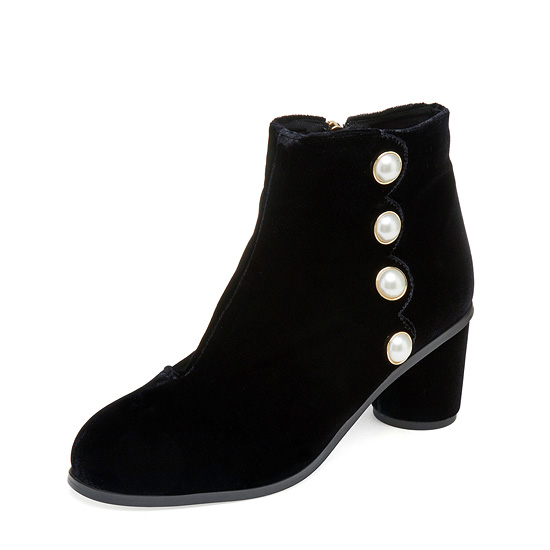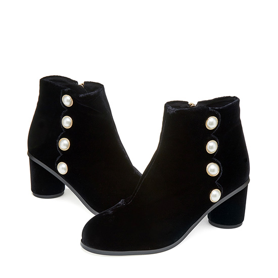 - 부드러운 벨벳 소재를 적용하여 고급스러운 앵클 부츠.