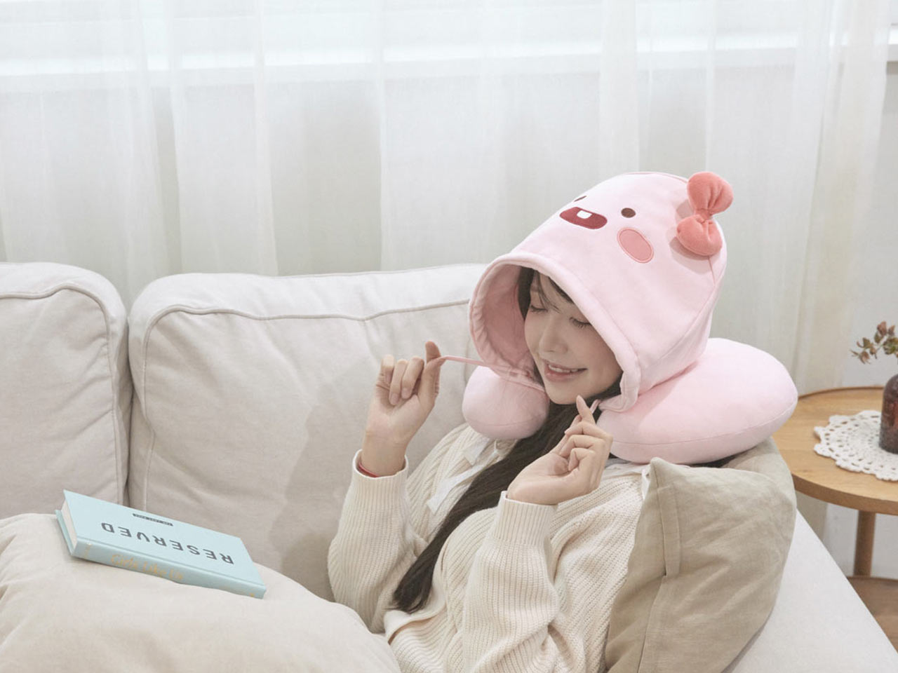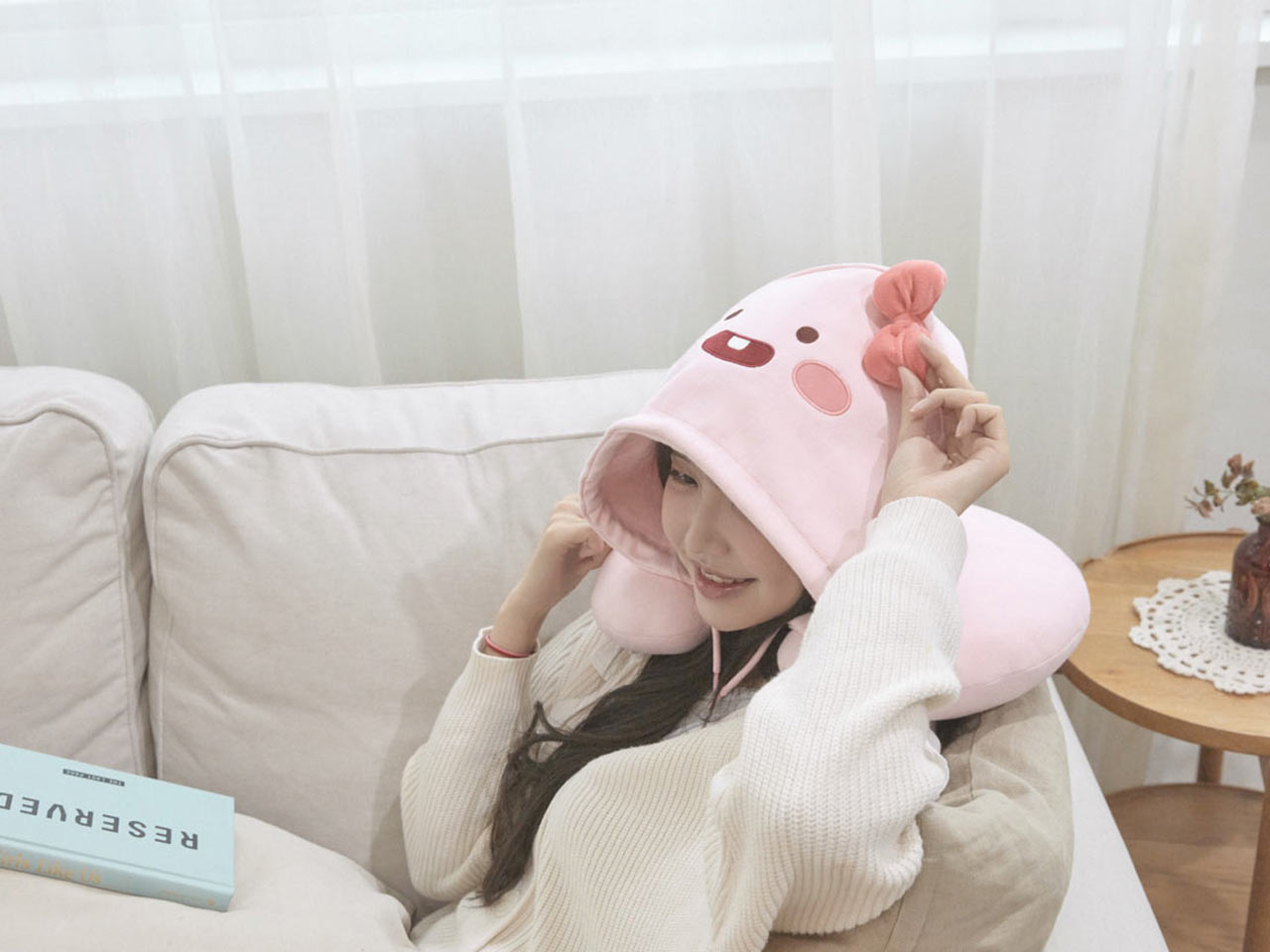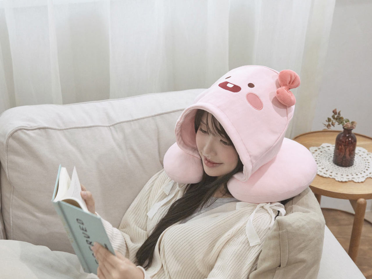 편안함과 귀여움을 동시에 가져다주는 후드 목베개.