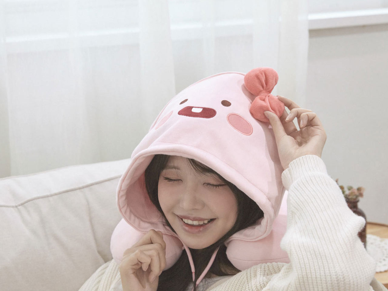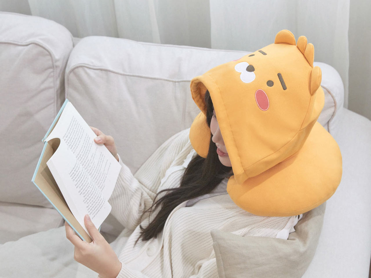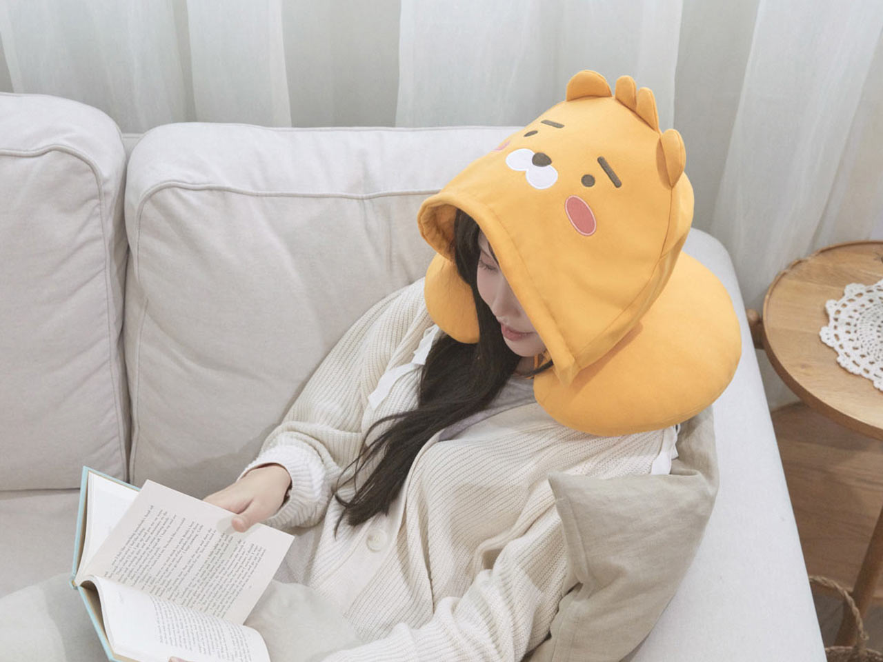 편안함과 귀여움을 동시에 가져다주는 후드 목베개.