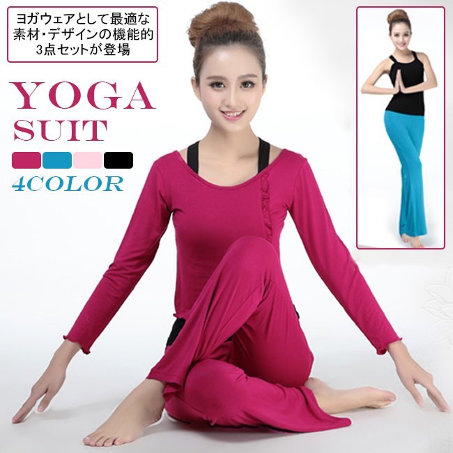 | 商品名 | ヨガウェア 上下セット 3点セット ヨガ服 スポーツウェア ダンスウェア 長袖トップス ロングパンツ タンクトップ レディース モダール |