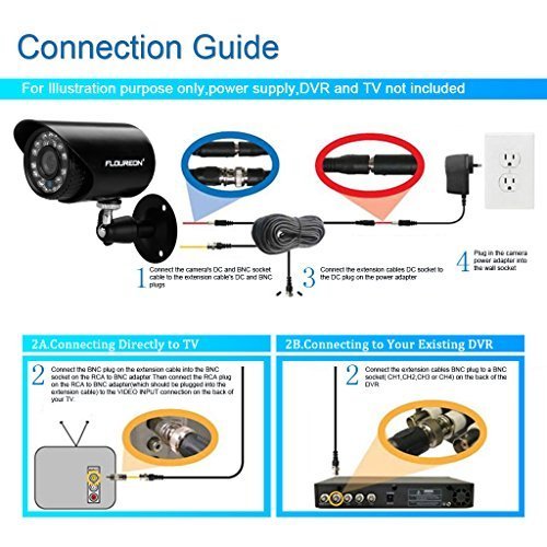 -. Feature : 【What You Get】Floureon 900TVL waterproof DVR security cameras with 1 year warranty and friendly customer service. / 【Infrared LEDs】24 infrared leds camera with 15m(49ft) night vision, ideal for day and night usage. / 【Specification】900TVL 1/3" 4mm(0.16inch) lens CMOS CCTV DVR camera. Super low lux 0 lux minimum illumination. / 【Waterproof】IP66 waterproof class makes this camera suitable for outdoor locations. / 【Application】Perfect for home, office, shop, business and restaurant monitor. Only for replacement, not include power adapter.