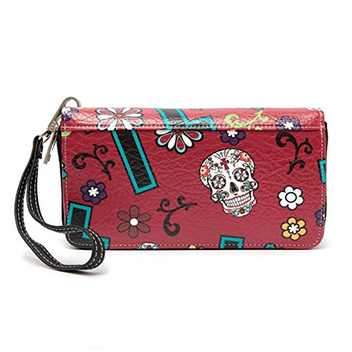 -. Title : Cowgirl Trendy Western Purse Sugar Skull, Cross Clutch Wallet Day of the Dead Wristlet